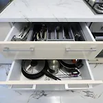 - ❓¿Hay una cocina disponible en el apartamento para uso de los huéspedes?Sí, el apartamento está equipado con una cocina completa y ofrece también cafetera/tetera, una nevera y cristalería.